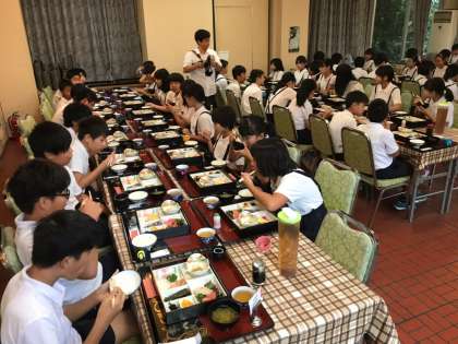 しっかり体操した後の朝食は、とてもおいしいです。今日の活動も楽しみです。