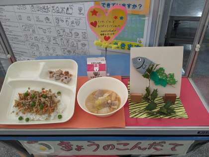 明日は赤魚の焼き物の米飯献立、金曜日はなにわうどん(きつねうどんをモデルに考えられた大阪のメニュー)がでます。お楽しみに!