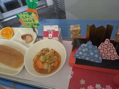 この3日間は、フルーツやてんぷらの忙しい献立にもかかわらず毎日、リスやうさぎの形のラッキーにんじんが入っていました。