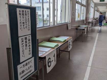 なお、就学援助費についての連絡文書の配布も合わせて行っています。また、給食で食物アレルギー対応が必要な児童の保護者の方は「5月分アレルギー対応献立表」も配布しますのでお持ち帰りくださいますようお願いいたします。