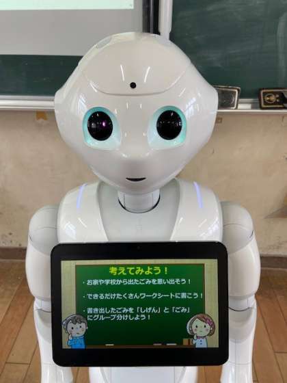 最後に、ごみを減らすために、自分たちでできることを考えました。環境やごみ問題について考えを深めることができた学習でした。Pepper、ありがとう。