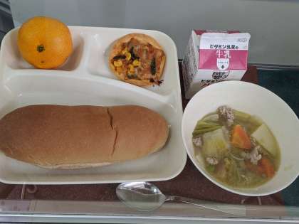 6年生が修学旅行に出かけた今日、給食では体をじょうぶにする大豆やこんぶが入った煮ものが出ました。れんこんやごぼう、こんにゃくが入って噛み応えのある和食メニューです。子どもたちは全員前を向き、おしゃべりなしでよく噛み、味わって食べています。日本食のよさを感じ、素材の味がよくわかる人に育ってほしいと思います。焼き魚のさごしは大根おろしのソースがさっぱりしておいしかったです。昨日はギョーザの皮に具をのせ、チーズをかけて焼いた「変わりピザ」がでました。月曜日のクラブ活動でもこのミニピザをアレンジして調理した調理手芸クラブの子どもたちは「給食で人気のおいしいミニピザの作り方がよくわかって、うれしかったです」とうれしそうした。