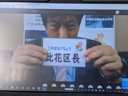 月曜日の朝会は、感染予防のため、各教室でモニターを見ながらオンラインで行いました。此花区長様が学校へ来てくださり「今日は、とっても素敵なすばらしい言葉『ありがとう』のお話です。物をもらったときだけでなく、何かをしてもらったとき、親切にしてもらったときなどいろんな場面でこの言葉を言いましょう。きっといいことがあります。」とステキなお話をしてくださいました。また、担当の教諭から読書週間に、本に親しみましょうとのお話もありました。読書の秋、本を読んで心を耕し、「ありがとう」の言葉をたくさん言える心やさしい人に育ってほしいと思います。