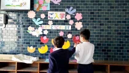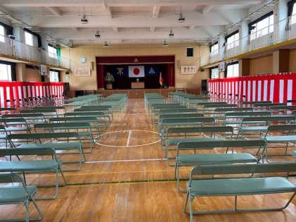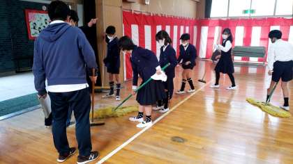 明日の入学式に向けて準備が行われました。校内の清掃や講堂の会場設営です。新6年生の児童が大活躍!よくがんばってくれました。