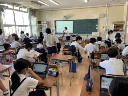 6年生は、教室でTeams会議2度目の練習、Wi-Fi接続の仕方を学習しました。Teamsの自分のアイコン画像を変えるやり方を子どもどうしで教えあっていました。すごい!アイコンが変わると愛着が湧きますね。今日は、同じく2年生もパソコンへのログインの仕方、Teamsの会議への参加の仕方を練習しました。来るべきオンライン学習の準備が着々と進んでいます。