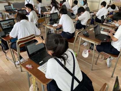 仲良く、修学旅行の活動班などのグループを決めました。また、しおりに挟むオリジナルの修学旅行ガイドブックも楽しく取り組んでいます。