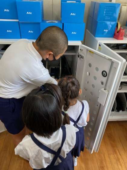 今日は、タブレット保管庫からの取り外し方、カメラ機能の使い方、撮った写真に名前を付けて保存する方法などを、ひとつずつマンツーマンで丁寧に教えてもらって、できるようになりました。