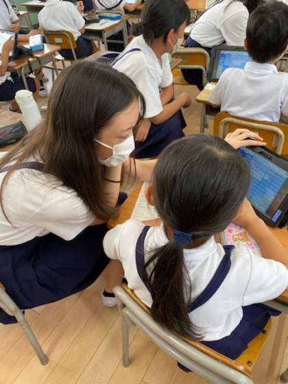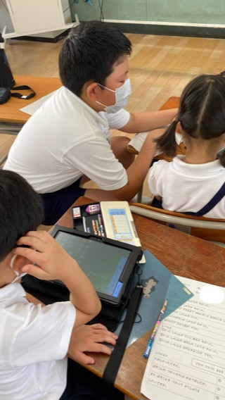 1年生は6年生からタブレットの使い方を教えてもらいました。