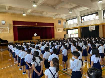 今日は1学期終業式でした。校長先生からは各学年のよかったところやお家の方に1学期を支えていただいたことへの感謝の気持ちを伝えましょうというお話がありました。