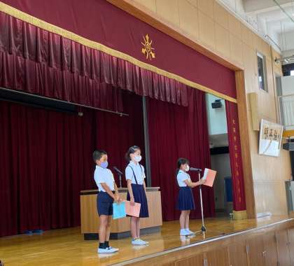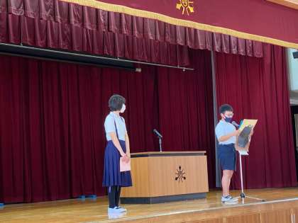 また、1学期にがんばったことや心に残ったことについて、3年生と6年生から発表してもらいました。「授業中にたくさん発表したこと」や「20mシャトルランをがんばったこと」「漢字テストに向けて努力したこと」「楽しかった体育ビンゴ」「保健委員会の仕事の大切さ」など、コロナ禍でもこの1学期を一生懸命がんばった様子がとてもよくわかりました。