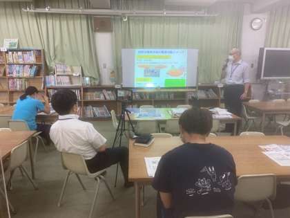 今日は、自然災害の発生に備えて防災研修を行いました。区役所の危機管理室、防災担当の方々に来ていただき、災害発生時の緊急対応についてお話をしていただきました。