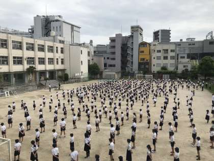 各クラスでは、久しぶりに友だちと会えて、みんな嬉しそうです。夏休みの宿題を提出したり、夏休みの出来事をスピーチしたり、教室を掃除したりしました。