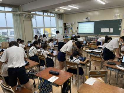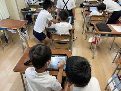 今日も6年生がタブレットの使い方を1年生に教えています。