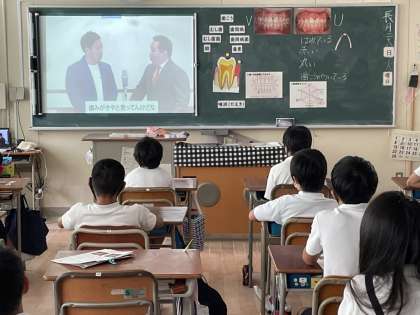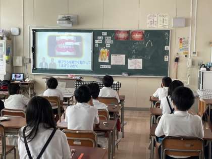 歯磨きの習慣や磨き方について、ミルクボーイの漫才を見ながら楽しく活動しました。