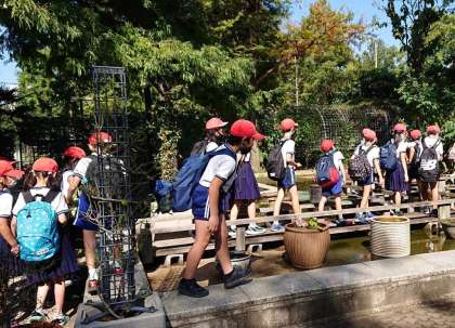 お弁当の後は、広い芝生で思いっきり遊び、併設の植物園も散策しました。季節外れの暑い一日でしたが、今年初めての遠足をめいいっぱい楽しんだ4年生でした。