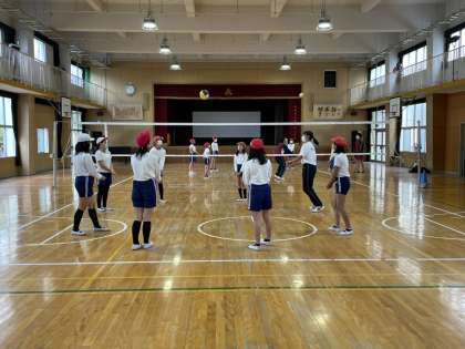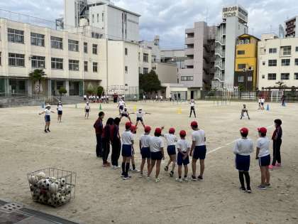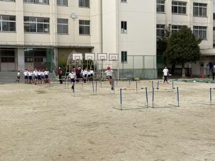 6年生は、キックベースボール・ハードル走・バレーボールの3つの種目に分かれて、基礎練習から実技まで様々なことを教えていただきました。