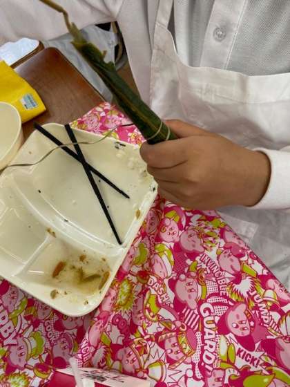 今日の給食にちまきが出ました。「あまい!」「おいしい!」という子どもたちの声が。