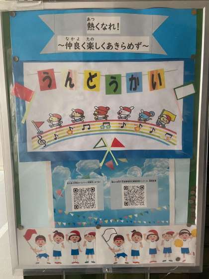 玄関のミニ掲示板が変わりました。熱くなってきてますよ〜