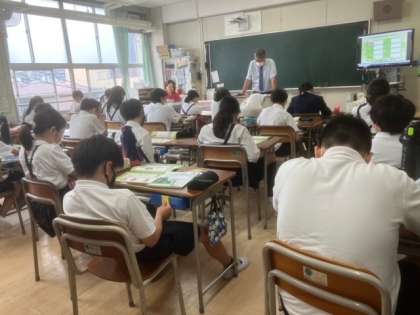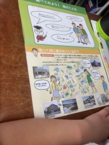 税務署の方にゲストティーチャーに来ていただきました。税金とは何か? 税金がなくなるとどんなことが困るかなどを教えてもらいました。社会科の学習とも関連付けて学べたのでとてもよかったです。