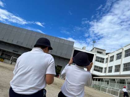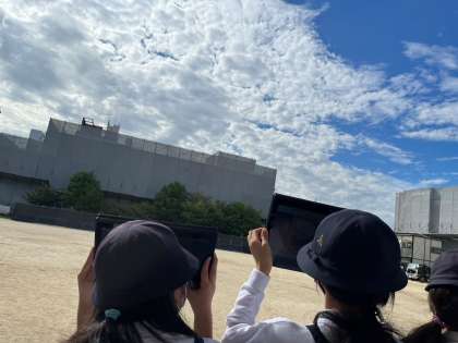 5年生の理科の学習です。一人一台学習者用端末の「コマ録りアニメーション」を使って、雲の動きを観察しました。