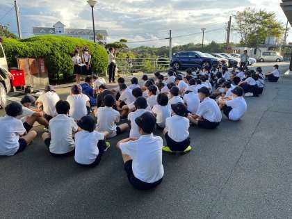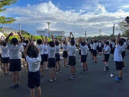 おはようございます。修学旅行2日目です。今朝は早くから起きていた班もあったようです。朝のつどいでは、今日元気に活動できるようにラジオ体操をしました。