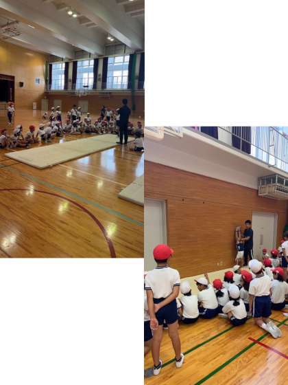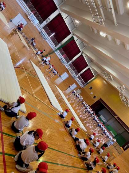 子どもたちだけでなく、先生たちも中学校の体育館の大きさにびっくり! 行かれた先生のお話によると、小学校の4〜5倍(!)はあるのではないかということです。