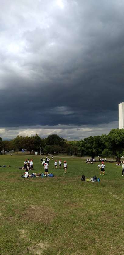 大仙公園の広場でおやつもしっかり食べた後、元気に活動しています。