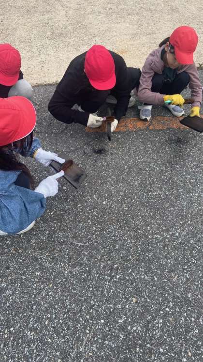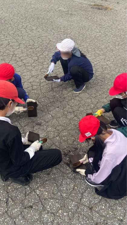 焼き板作りが始まりました。板を磨いて、すすを取っています。