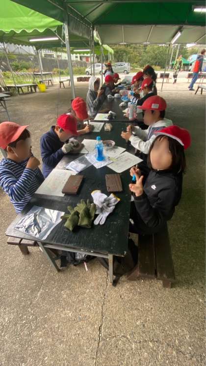 ポスターカラーで絵を描いてます。自分の部屋やトイレの札を作っている人もいますよ。