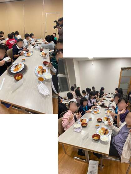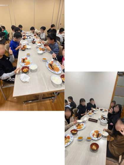 お待ちかねの夕食です。ご飯と味噌汁のおかわり大人気です。