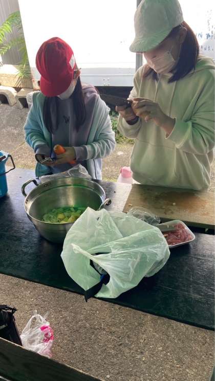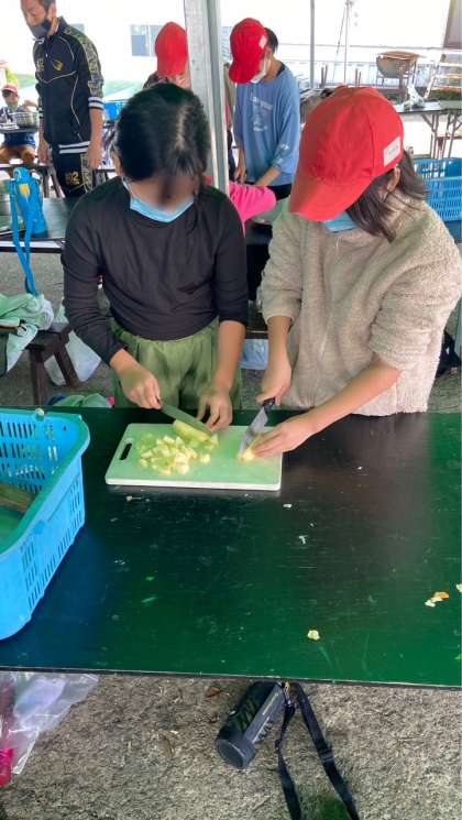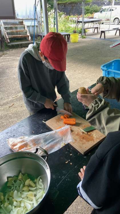 野菜を切るのも楽しいね。火はついたのかなあ・・・?
