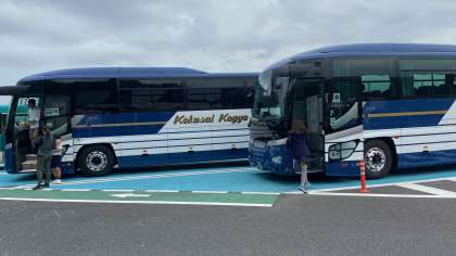 14:12.赤松サービスエリアに着きました。バスの中ではDVDを見ている人もいれば、ぐっすり眠っている人もいます。