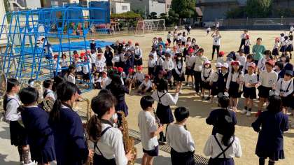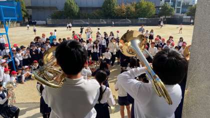お昼休みの校庭に突如現れた「西九条ジュニアウインドオーケストラ」のメンバー・・・一体何が始まるんだ!?