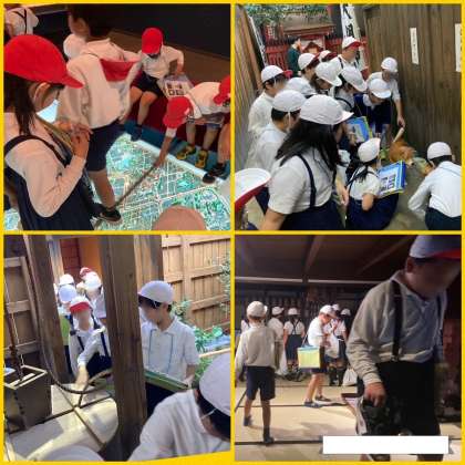 後半は、江戸時代の街並みに潜入! 他にも明治時代のジオラマや道具、地図を見て学習しました。