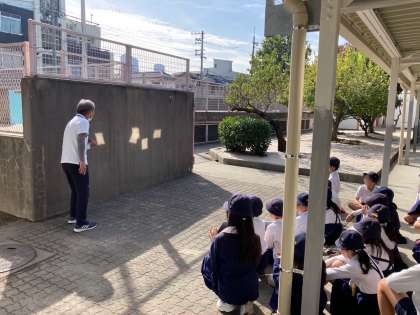 3年生の理科です。鏡を使って学習しました。日光を反射させて大興奮の3年生。