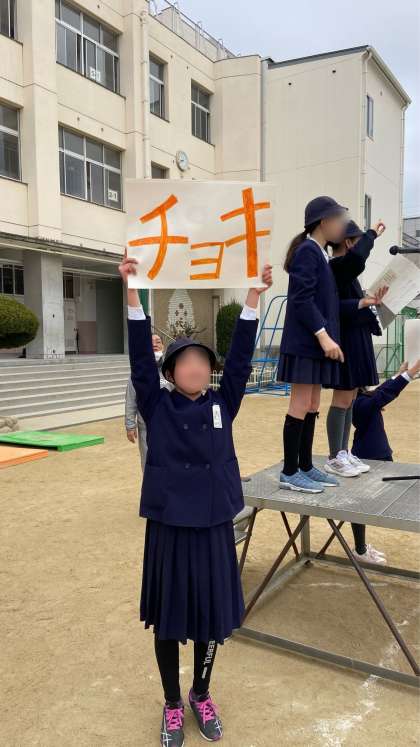 今朝の児童集会は、集会委員会の「ジャンケン大会」でした。集会委員の「巨大ジャンケン」とジャンケンをします。負けとあいこは、その場に座らないといけません。