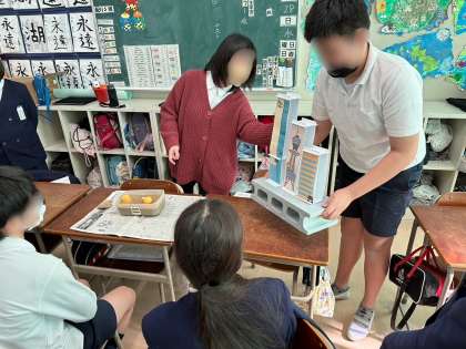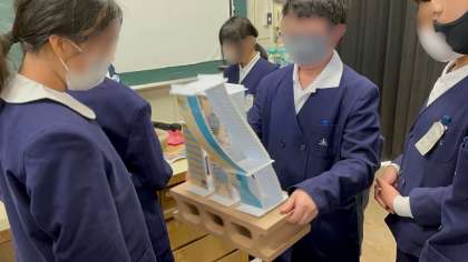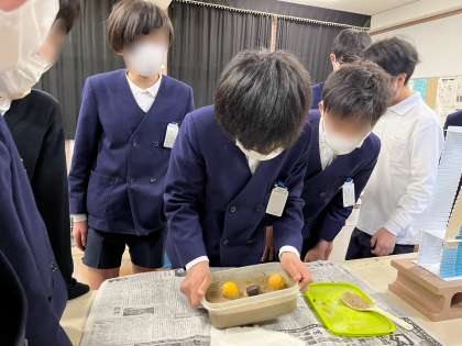 建物の高さによって揺れやすい周期が違うこと、液状化現象はどうやって起こるのかを実験して調べました。