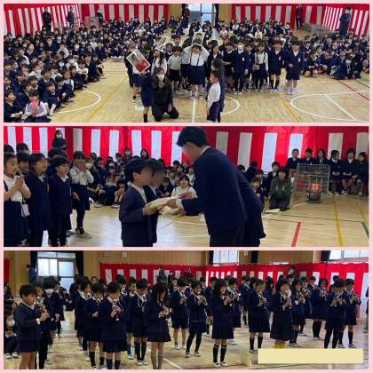 お世話になった6年生の「卒業を祝う会」がありました。各学年からの出し物は、その学年らしく、心が温まるものでした。6年生とのプレゼント交換もありました。