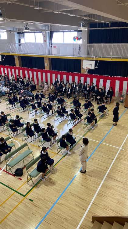 「3つの約束、守れますか?」という校長先生のお話の後、1年生の「はい!」という元気な返事がありました。お祝いの言葉をしっかり聞き、あいさつができる1年生、すごいです。 2年生の歓迎のVTRも素敵でした。