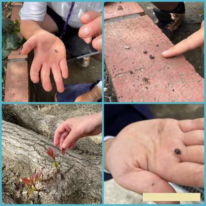 「くすの木の下に葉っぱはえてる!かわいい。」
