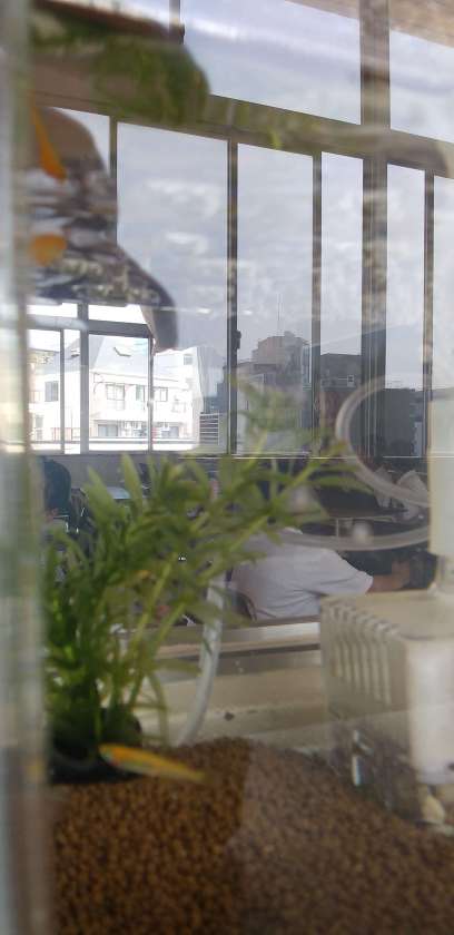 理科の学習で飼いはじめたメダカ越しの学習のようすです。