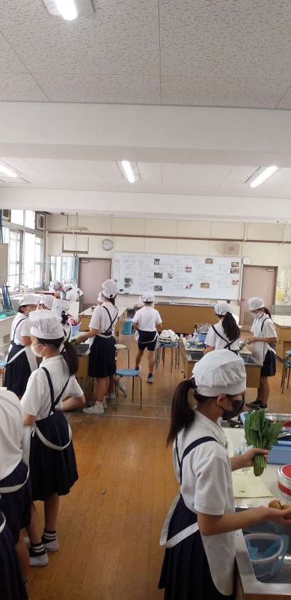 「ゆでて食べよう」で、じゃがい・ほうれん草をゆでます。