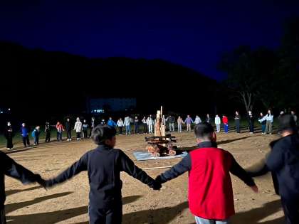 神秘的な火の下に、みんなの心が一つになったキャンプファイヤーでした。