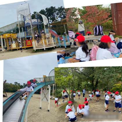順延になっていた1年生の遠足がありました。服部緑地公園に行きました。みんなで行く遠足は最高です。遊具でいっぱい遊び、お友だちとお弁当を食べ、秋を見つけることもできました。