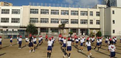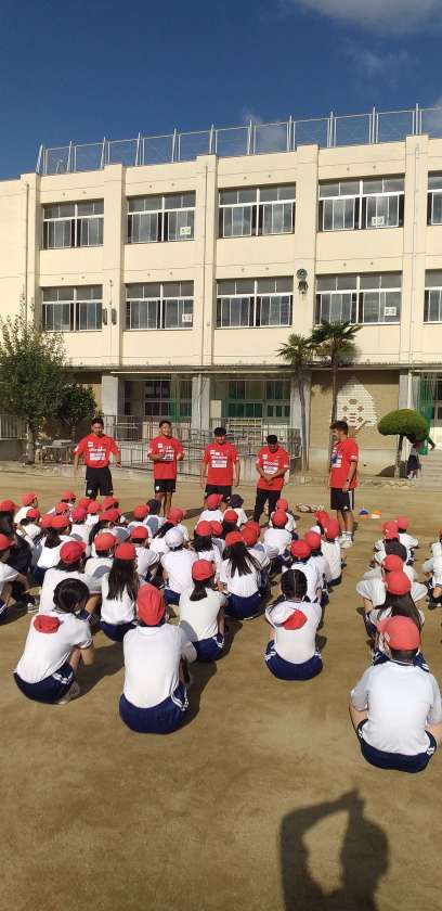 レッドハリケーンズの方に来ていただき、ラグビーを体験しました。