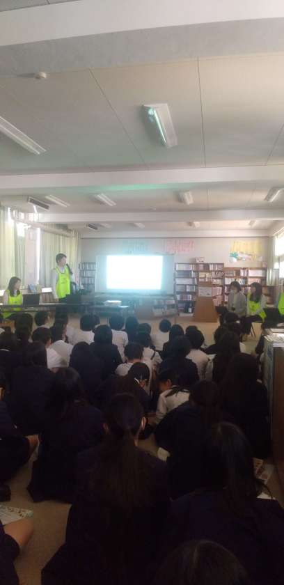 東京海上日動の方にゲストティーチャーとして来ていただき、みどりの授業をしました。