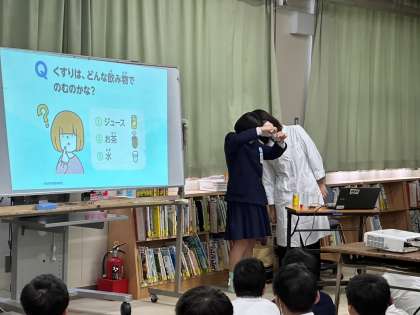 6年生は、薬剤師の方に「薬の正しい使い方講座」をしてもらいました。薬物乱用や飲酒、喫煙などについて、身体に及ぼす影響や正しい使い方を学習しました。
