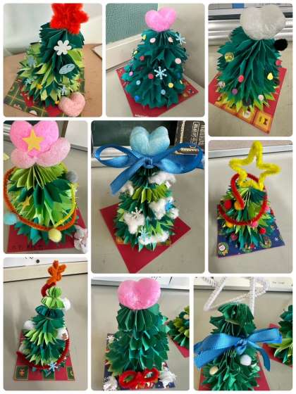 6年生がクリスマスツリーと正月飾りを作りました。