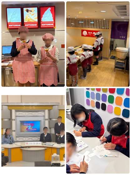 体験で作ったお寿司やピザ、クロワッサンなどをおいしく食べました。将来やってみたい職業はあったかな?