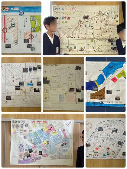 6年生、小学校最後の参観は総合的な学習の時間で取り組んだ防災マップの発表をしました。地域に分かれて町を歩き、危険な場所や避難場所について調べ、地図にまとめました。保護者の方にも防災、減災について知ってもらうことができました。